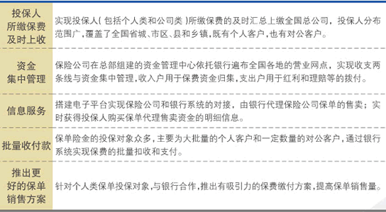 2.针对个人类客户,在保单上必须签约投保人的个人银行账户,后续必须通过该账户办理保费的扣缴和红利、理赔金等的支付,建行可以设计营销方案与保险公司合作,为投保人现场开立个人结算账户;为保险公司提供个人账户(开立机构为建行)检核服务,确保保费代扣和代付业务的正确性;接受保险公司发送的电子文件,在线或柜面为其批量办理保费的代扣和代付业务,确保其资金到位的时效性。