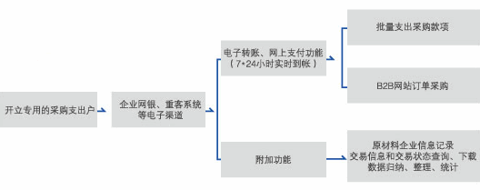 制造销售企业可设立专门的采购支出户,通过银行平台完成批量款项支付,通过网上支付功能在B2B网站上进行订单采购原材料;并在系统中记录原材料企业账户信息,减少财务人员的重复操作,并可对银行反馈结果进行整理统计,对各项采购内容进行归类整理,以便对支出项目做好计划控制。